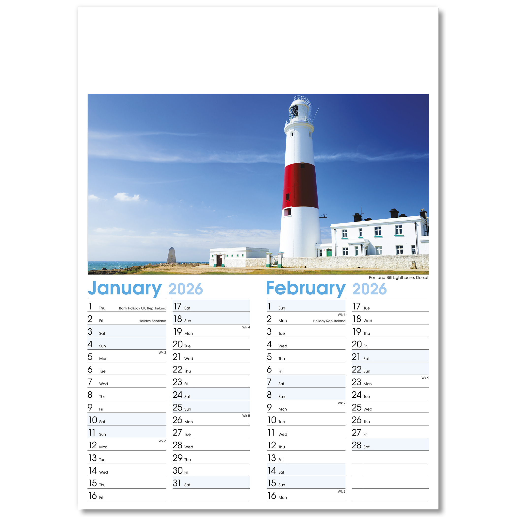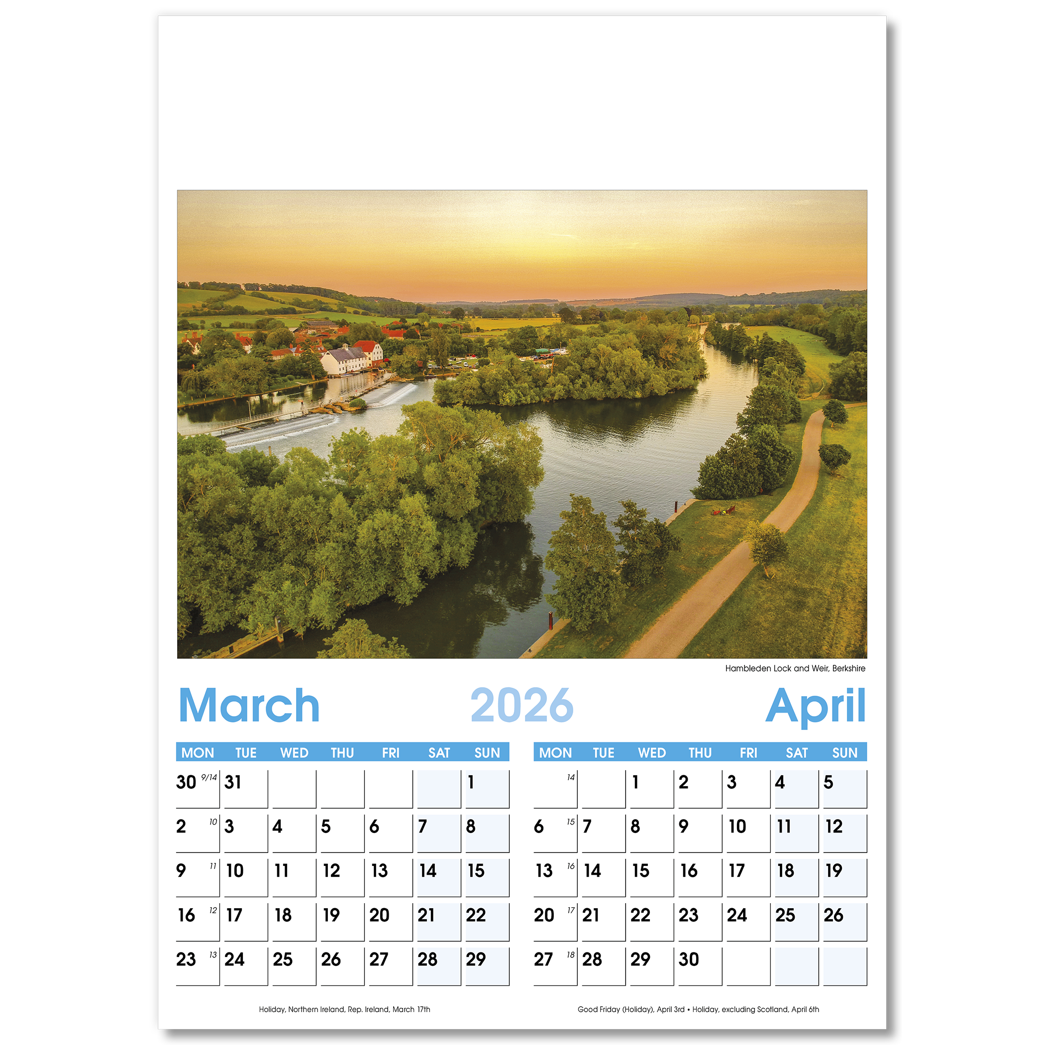 England Optima Wall Calendar – 7 Leaf