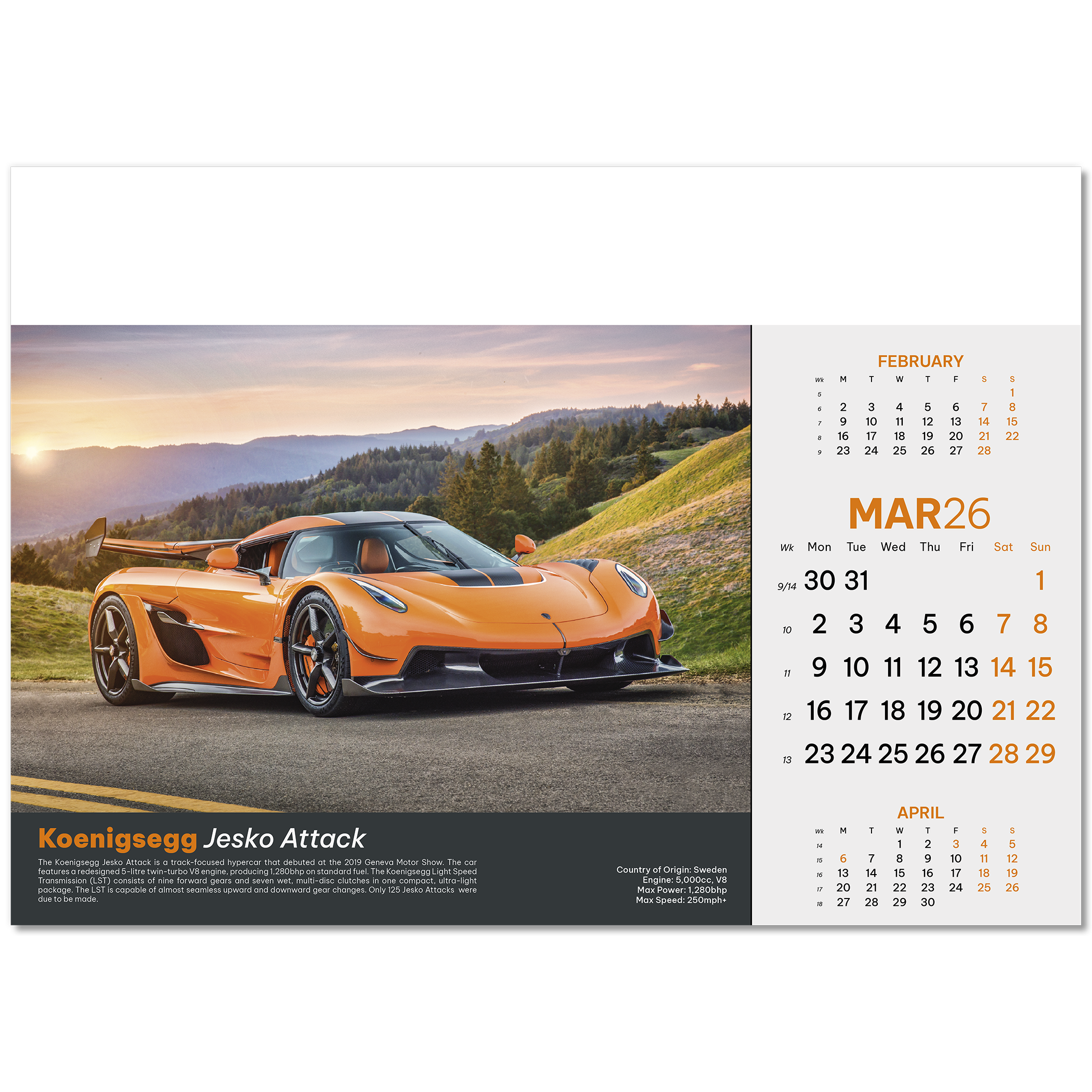 Supercars Wall Calendar